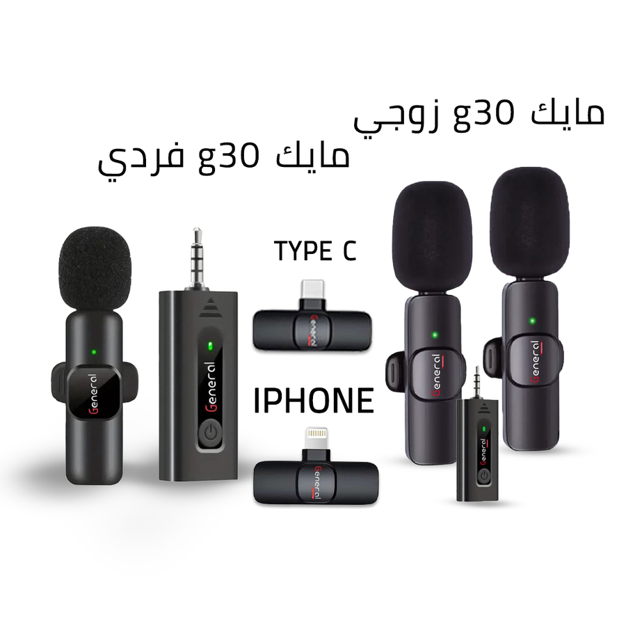 "اتنين مايك وايرلس يعمل بدون اي اسلاك علي مسافه ٢٠ متر يعمل علي ايفون وتايب سي وكاميرا يوجد به عزل وتنقيه الصوت ممتاز في الجوده والشحن "